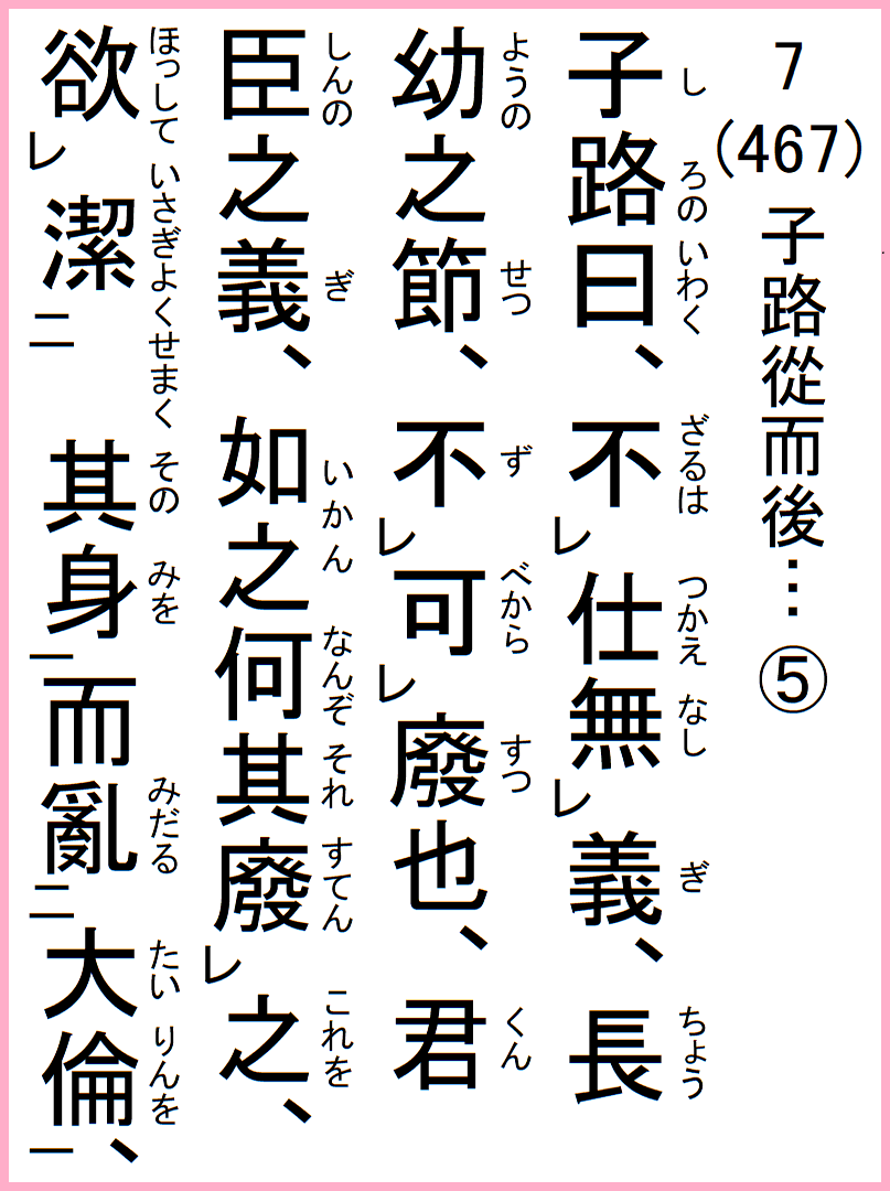 漢文として楽しむ論語 微子第十八 7/11トップページ 論語序説(朱子による孔子の略歴) 學而第一 爲政第二 八佾第三 里仁第四 公冶長第五 雍也第六 述而第七 泰伯第八 子罕第九 郷黨第十 先進第十一 顔淵第十二 子路第十三 憲問第十四 衞靈公第十五 季氏第十六 陽貨第十七 微子第十八 子張第十九 堯曰第二十 微子第十八 |