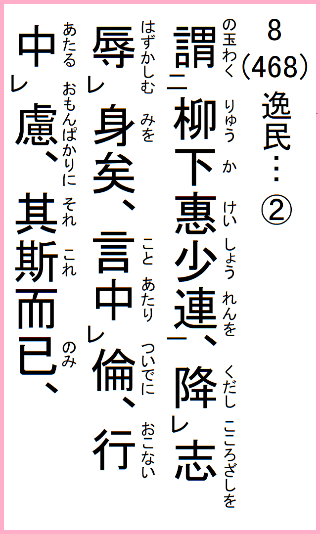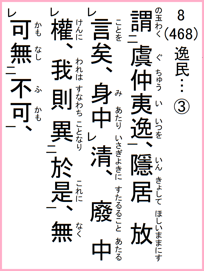 漢文として楽しむ論語 微子第十八 8/11トップページ 論語序説(朱子による孔子の略歴) 學而第一 爲政第二 八佾第三 里仁第四 公冶長第五 雍也第六 述而第七 泰伯第八 子罕第九 郷黨第十 先進第十一 顔淵第十二 子路第十三 憲問第十四 衞靈公第十五 季氏第十六 陽貨第十七 微子第十八 子張第十九 堯曰第二十 微子第十八 |
