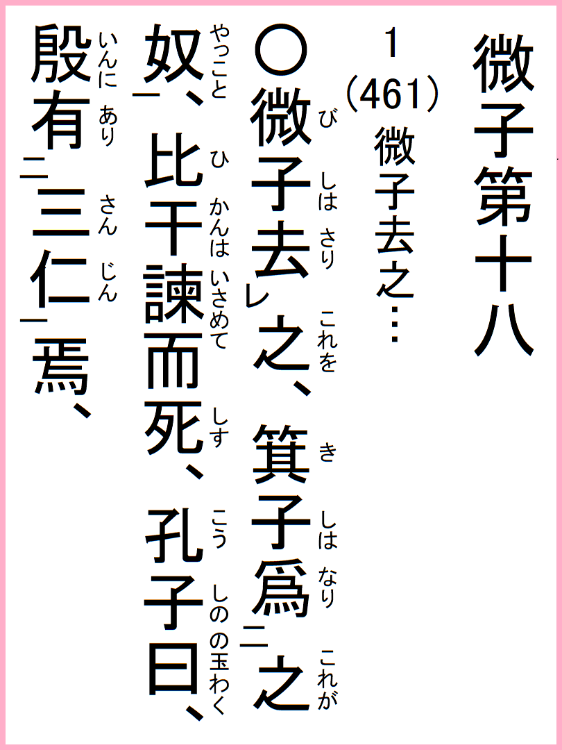 18-1 微子は之を去り、箕子は之が奴と為り、比干は諫…