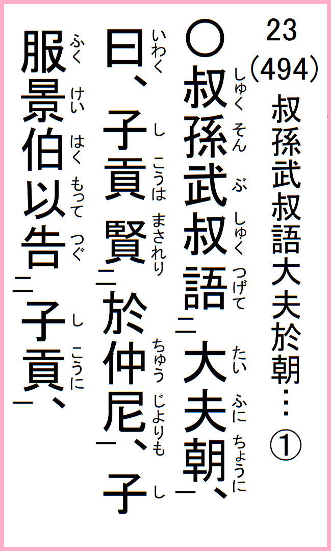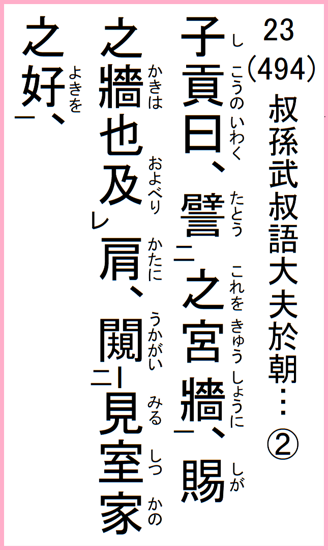 19-23 叔孫武叔、大夫に朝に語げて曰く、子貢は仲尼よ…