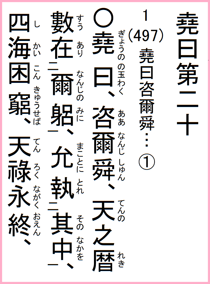 1(497) 堯曰咨爾舜…